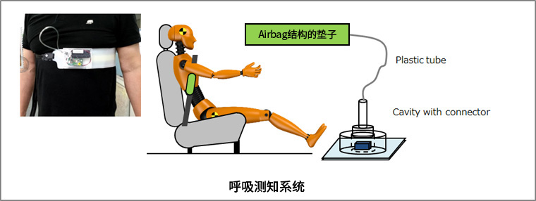本公司的压电式压力波传感器比较小型,可安装于汽车座椅和安全带上。而且,因为还能测出连续性的压力变化,故可以通过检测坐姿,测知呼吸和体动信号来掌握驾驶者的状态,从而使驾驶变得更安全更舒适。