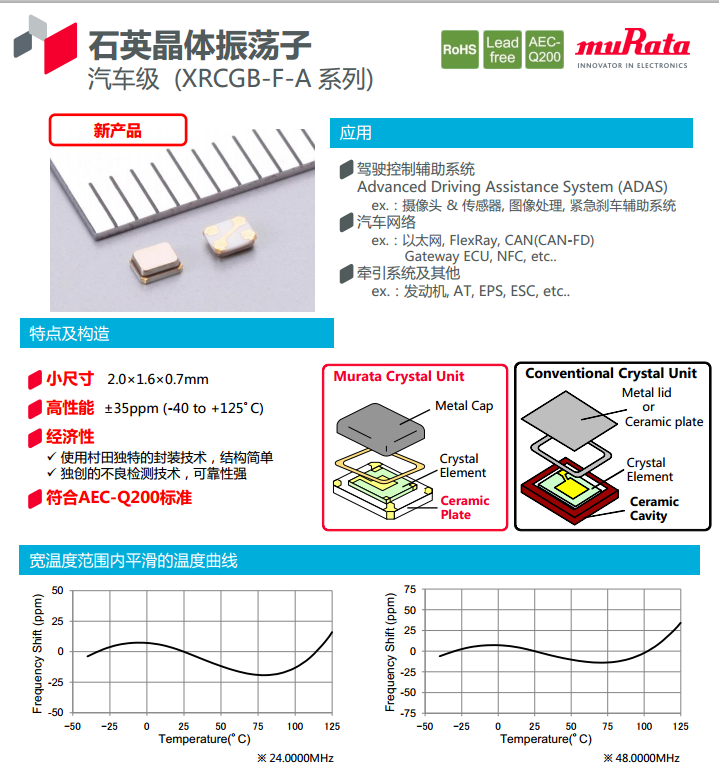 使用了现有的水晶振荡子中所没有的独特的封装,将水晶元件的设计最优化, 不管是品质、量产性还是性价比村田的水晶振荡子都很完美。